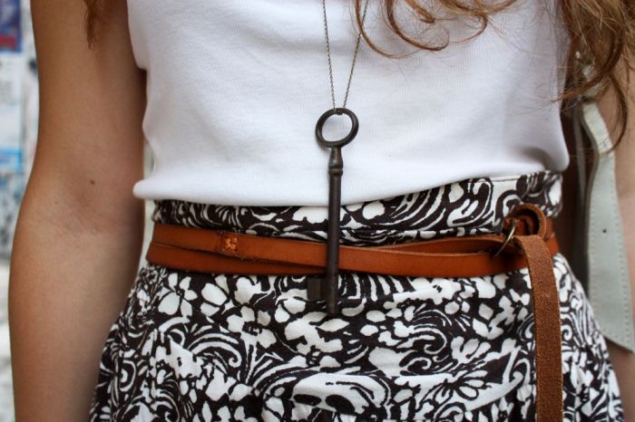 Τόσα σωστά είναι ντυμένη η Κωνσταντίνα. Έξυπνο print, σωστές δόσεις δερμάτινου used καφέ χρώματος, φρεσκάδα και πολύ σωστό attitude. Aν αυτό δεν είναι κορίτσι για φίλημα τότε κι εγώ δεν ξέρω τι άλλο είναι. Κλειδί αρχαικού μοτίβου για κολιέ και το δε τουριστικό σανδάλι ως σωστή και φιλάρεσκη νεαρά το «ποζάρη» τόσο σωστά που θα αρχίσω να πιστέυω ότι είναι επαγγελματίας της μόδας. Ευγε!