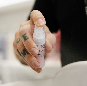 Αφού είχα σχεδόν κοιμηθεί στα χέρια του Μάνου, είχε έρθει η ώρα για το ξέβγαλμα και για την προετοιμασία του «κοκτέιλ» μου. Ο Μάνος άνοιξε την Fusio-Dose Genesis Booster αμπούλα και της πρόσθεσε το Concentré δημιουργώντας εκείνη τη στιγμή το μείγμα που θα έβαζε στα μαλλιά μου.