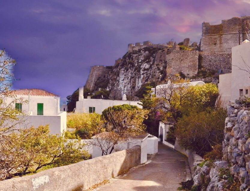 Η ατμόσφαιρα στη χώρα είναι αισθαντική, με τα λευκά της αρχοντικά, τα πολύχρωμα σοκάκια και τις μυρωδάτες αυλές να συνθέτουν ένα μαγικό σκηνικό, δώρο για όλες τις αισθήσεις. Μη ξεχάσετε να ανέβετε στη βεράντα του Τόνι για αυθεντική ιταλική πίτσα με θέα το Κάστρο και να πάτε για ποτό στο Choraki η στο Mercato. Κλασική η Βεγγέρα στη πλατεία για καφέ και ελαφρύ σνακ.