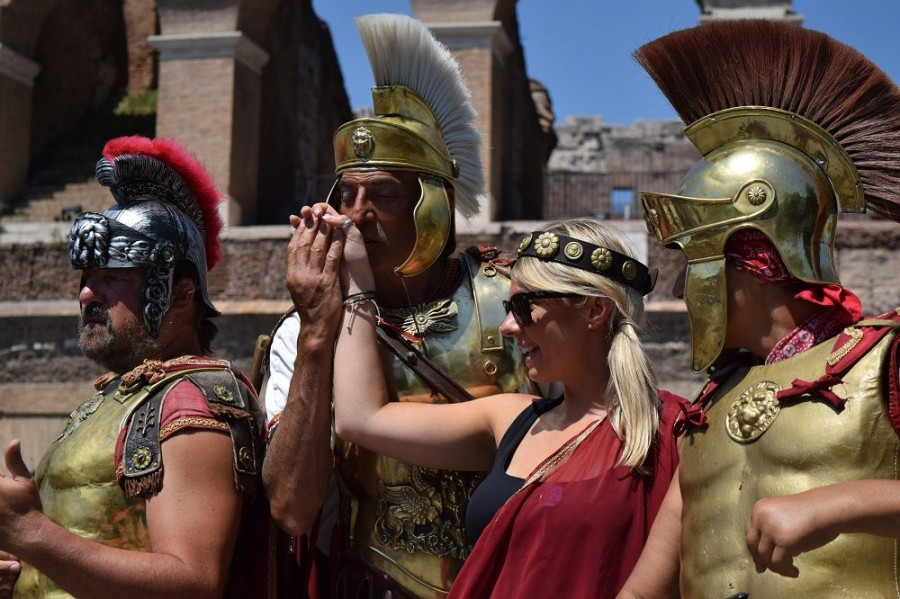 Προτού επισκεφτείς, πάντως, το Κολοσσαίο κάνε τη μελέτη σου για να ξέρεις τι θα δεις. Πρόσεξε, επίσης, τους... Ρωμαίους έξω το δημοφιλές τουριστικό αξιοθέατο. Στην γοητεία τους υπέκυψε η νεαρή τουρίστρια που απεικονίζεται στην παρακάτω φωτογραφία και την οποία και θέλησα να απαθανατίσω.