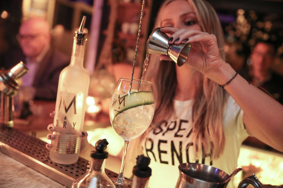 «Θα επιχειρήσω το M Dry Golden» είπα στον Διονύση. «Να πηγαίνει με τα χρυσά μου τα μαλλιά» (*δεν γέλασε κανένας τους). Έπιασα ένα ποτήρι (ψέματα, δεν έφτανα μέχρι εκεί πάνω), έβαλα πάγο και πρόσθεσα, χρησιμοποιώντας μια τσιμπίδα, μια λωρίδα αγγουριού και ανακάτεψα ελαφρά.