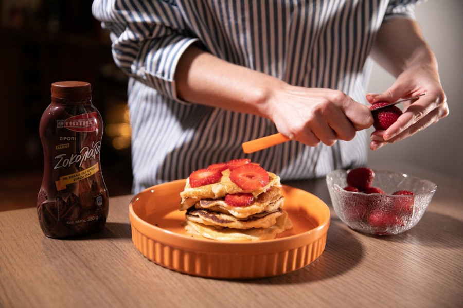 Αφού έχεις ολοκληρώσει τα πρώτα βήματα της διαδικασίας, σειρά έχει το πιο δημιουργικό κομμάτι, που δεν είναι άλλο από τον «στολισμό» των pancakes σου. Κάθε μέρα στα social media βλέπεις εκατοντάδες πρωινά να «παρελαύνουν» στην αρχική σου σελίδα, σειρά έχει να φτιάξεις και εσύ κάτι εξίσου instagramικό και fabulous με αυτά! Βάλε τη φαντασία και την όρεξή σου να… δουλέψουν και μη διστάσεις να «παίξεις» με πρωτότυπους συνδυασμούς, χαρίζοντας στον εαυτό σου μία πεντανόστιμη εμπειρία. Στο δικό μου πιάτο πάντως, τα φρούτα (στην προκειμένη οι λατρεμένες μου φράουλες) και το λαχταριστό παχύρευστο σιρόπι με γεύση Σοκολάτα ΓΙΩΤΗΣ, είναι οι «πρωταγωνιστές» της επιτυχίας!