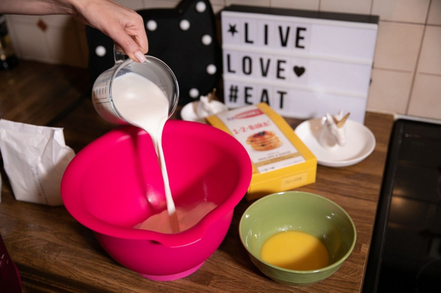 Εγώ, όπως και εσύ φαντάζομαι, πάντα φοβόμουν οτιδήποτε έχει να κάνει με συστατικά, πολύ συγκεκριμένες ποσότητες, ζύμη και τηγάνια. Αυτός ήταν και ο βασικός λόγος που τόσα χρόνια δεν μπορούσα να απολαύσω ένα πρωινό ακριβώς όπως το ονειρευόμουν. Όλα αυτά βέβαια, μέχρι που «τρύπωσε» στη ζωή μου το «σωτήριο» μίγμα 1 2 Bake! Διστακτική στην αρχή, το πρόσθεσα στο καλάθι του super market και έπειτα στο ντουλάπι με τα τρόφιμα, εξοπλίζοντας βέβαια και το ψυγείο με τα λίγα επιπλέον υλικά που χρειάζονται για την παρασκευή του. Το επόμενο πρωί έβγαλα τη συσκευασία, πανέτοιμη για το μεγάλο βήμα. Λίγα λεπτά μετά, ομολογώ δεν περίμενα πως θα ήταν τόσο εύκολο και τόσο γρήγορο ταυτόχρονα! Το μόνο που έκανα ήταν να ακολουθήσω πιστά τις οδηγίες που βρίσκονταν καταγεγραμμένες στη συσκευασία, τις οποίες έχω καταγράψει παρακάτω για σένα.