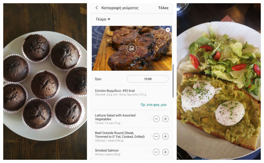 Healthy App. Επιπλέον, η εφαρμογή Samsung Health (ήδη κατεβασμένη στο κινητό), ήταν ό,τι πιο χρήσιμο για την πρωτεϊνούχα διατροφή που ακολουθώ αυτό το διάστημα. Σε κάθε γεύμα προσθέτω τα στοιχεία (πχ. 10.00 πμ, muffin) και μου βγάζει τις αντίστοιχες θερμίδες, καθώς και τον υπολογισμό τους σε πρωτεΐνη/υδατάνθρακα/λιπαρά κλπ. Και όλα αυτά στη λογική ημερολογίου.