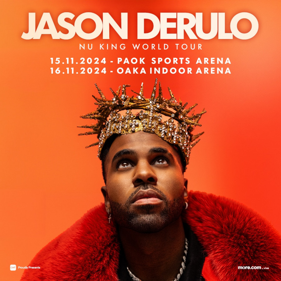 Ο Σουπερστάρ Jason Derulo έρχεται στην Αθήνα και την Θεσσαλονίκη με μια φαντασμαγορική υπερπαραγωγή, στο πλαίσιο του NU KING WORLD TOUR 2024, στις 15 Νοεμβρίου 2024 στη Θεσσαλονίκη, στο PAOK SPORTS ARENA και το Σάββατο 16 Νοεμβρίου 2024 στην Αθήνα, στο OAKA INDOOR ARENA.