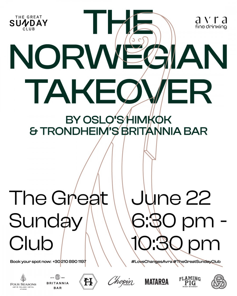 Tο πολυαναμενόμενο The Great Sunday Club επιστρέφει στο Avra Bar του Four Seasons Astir Palace Hotel Athens, παρουσιάζοντας μια έκδοση εμπνευσμένη από τη Σκανδιναβία. Την Κυριακή 22 Ιουνίου, δύο από τους πιο διακεκριμένους cocktail bar προορισμούς της Νορβηγίας –το Himkok (Όσλο) και το Britannia Bar (Τροντχάιμ)– καταλαμβάνουν την Αθηναϊκή Ριβιέρα για μια βραδιά με σκανδιναβικές γεύσεις, εκλεπτυσμένες τεχνικές και βραβευμένη φιλοξενία.