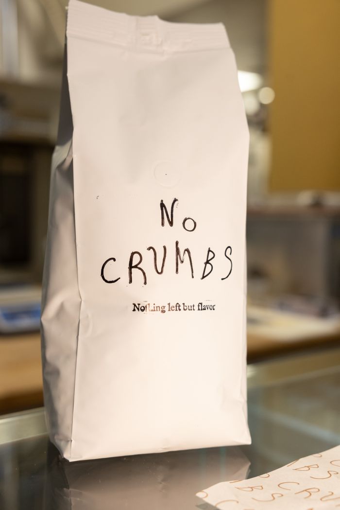 «Έχουμε ανοίξει εδώ και δύο μήνες μαζί με τον σεφ Μιχάλη Μερζένη, με τον οποίο έχουμε μαζί και τον Άσωτο, αλλά και με την Άννα Τασούλα από τη Focacceria Napul’e. Το μενού το επιμελείται η Λίζα Κερμανίδου, η οποία είναι Ελληνίδα pastry chef που ζει στο Λονδίνο». Στην πράξη, το No Crumbs έγινε σχεδόν αμέσως προορισμός. «Έρχονται από τον Πειραιά για να πάρουν το ψωμί τους από εδώ, στο Παγκράτι που βρισκόμαστε».