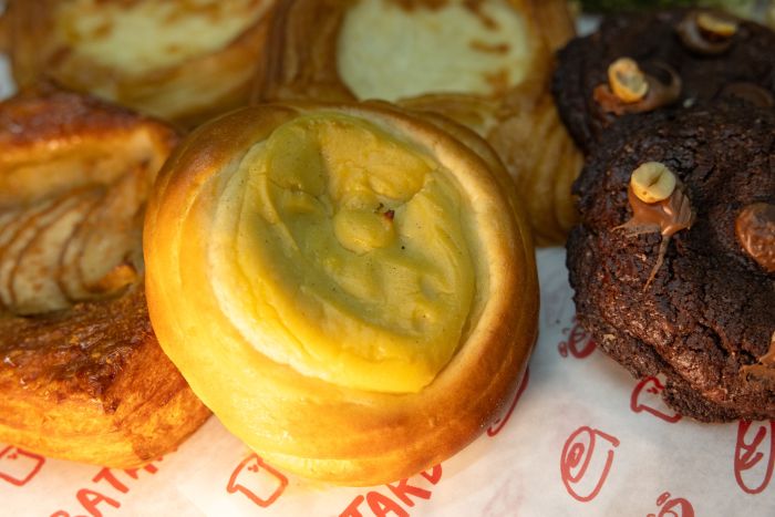 Τι είναι, όμως, αυτό που διαφοροποιεί αυτό το μέρος από ένανκλασικό φούρνο; Ο Παναγιώτης Κοτσουμπής, επιμένει κυρίως στην ποιότητα. «Σίγουρα είναι οι πολύ καλές πρώτες ύλες. Δεν παίζουμε με αυτό. Είμαστε πολύ αυστηροί και θα έχουμε την ίδια ποιότητα και καλύτερη στη συνέχεια». Στο ίδιο πλαίσιο εντάσσονται και κάποιοι κωδικοί που δεν βρίσκεις εύκολα αλλού, όπως το κρουασάν με ρυζόγαλο και αλμυρή καραμέλα ή το Japanese sausage roll.