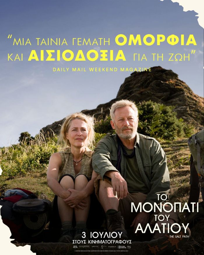 Το The Salt Path κυκλοφορεί στις 3 Ιουλίου στους κινηματογράφους από την The Film Group - Το best seller της Raynor Winn, που κυκλοφορεί στα ελληνικά από τις Εκδόσεις Κλειδάριθμος, αφηγείται την αληθινή ιστορία ενός ζευγαριού που, μετά την απώλεια του σπιτιού του και μια σοβαρή διάγνωση, διανύει με τα πόδια 630 μίλια στην άγρια ακτογραμμή της Αγγλίας - Μια συγκλονιστική διαδρομή επιβίωσης, αγάπης και ελευθερίας. Μία ταινία που πρέπει να τη δουν όλοι.