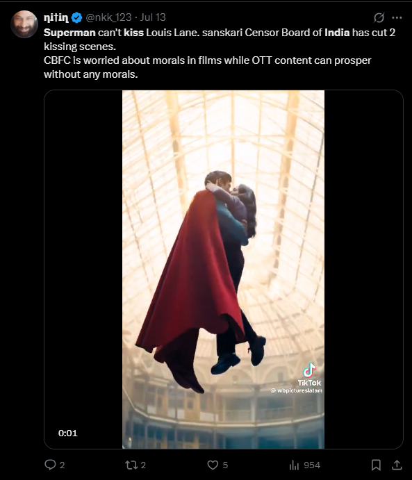 Ο Superman στην Ινδία δέχτηκε λογοκρισία και οι σκηνές φιλιού εξαφανίστηκαν - Το κοινό αντιδρά