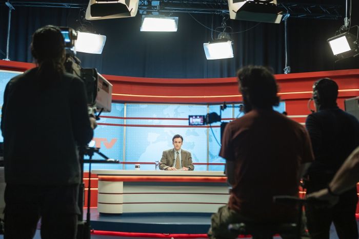 Ο Νίκος Ψαρράς είναι ο σταρ παρουσιαστής του δελτίου, που χάνει τα πρωτεία της απευθείας συνομιλίας με τον κακοποιό και σε αρκετές στιγμές της ταινίας, σαμποτάρει τον νέο και άπειρο συνάδελφό του που εμπιστεύεται ο Νικολάι.