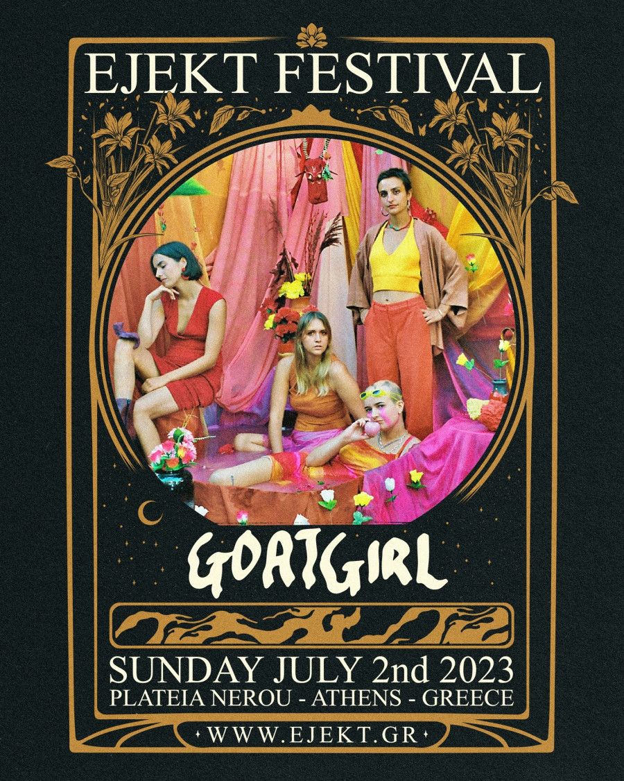 Ένα από τα πιο ενδιαφέροντα νέα συγκροτηματα της Μεγάλης Βρετανίας, οι Goat Girl με τους δύο δίσκους τους έχουν δικαια καταφέρει να προκαλέσουν ντόρο γύρω από το όνομά τους. Όταν κυκλοφόρησαν το ομώνυμο ντεμπούτο τους σε παραγωγή του Dan Carey (Foals, Fontaines DC, Wetleg, κλπ) το 2018, όλα τα μέλη τους ήταν κάτω των 20 ετών κι όμως, μας προσέφερε έναν δίσκο που εντυπωσίασε τόσο για τον κοινωνικό σχολιασμό όσο και με την punk/goth/country αισθητική του. Το επόμενο βήμα τους, το “On All Fours” του 2021, ήταν απροσδόκητο, αλλά εξίσου επιτυχημένο, καθώς μας έδειξαν ότι μπορούν να κινηθούν σε διάφορα μουσικά είδη (indie-electronic, post-punk), διατηρώντας την φρεσκάδα και την ικανότητά τους να γράφουν εξαιρετικά τραγούδια, όπως το “Sad Cowboy”. Η εμφάνισή τους στο EJEKT 2023 θα είναι η πρώτη τους στην Ελλάδα.