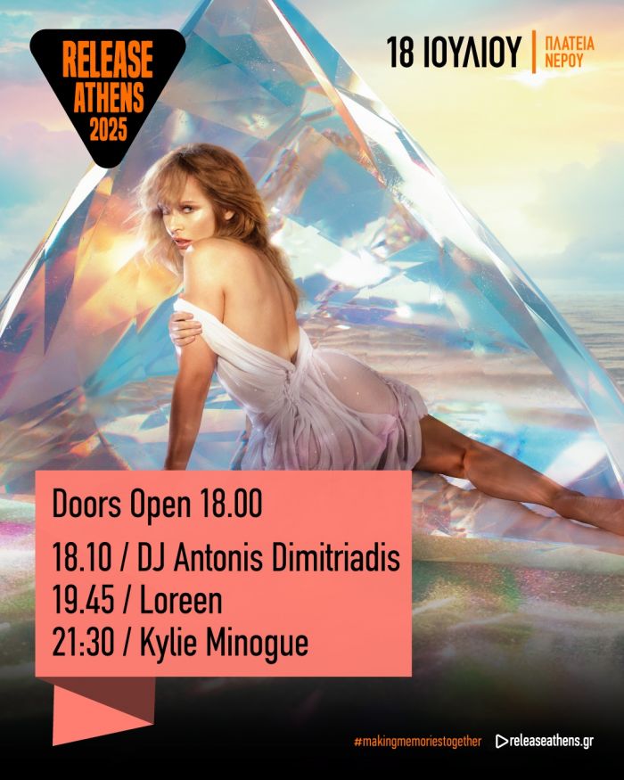 Την Παρασκευή στην Πλατεία Νερού, θα χορέψουμε με δεκάδες επιτυχίες της: “In Your Eyes”, “Come Into My World”, “Spinning Around”, “Can’t Get You Out of My Head”, “Slow”, “The Loco-Motion”, “I Should Be So Lucky”, “All the Lovers", "Padam Padam", "Love at First Sight"!