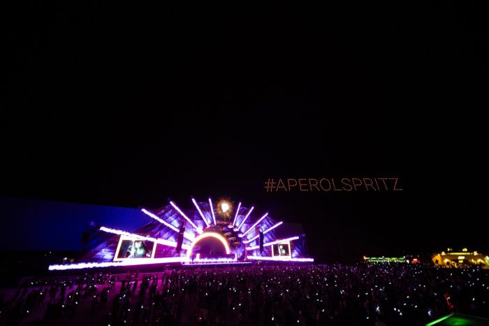 Το πορτοκαλί κύμα του Aperol κατέκλυσε το ΟΑΚΑ, με αποκορύφωμα της δεύτερης ημέρας ένα εντυπωσιακό drone light show που φώτισε τον νυχτερινό ουρανό της Αθήνας και δημιούργησε μια μαγική ατμόσφαιρα παρασύροντας το κοινό. Εκατοντάδες φωτεινά drones σχημάτισαν την εμβληματική φιάλη Aperol και ποτήρια Aperol Spritz που έκαναν cheers, προσφέροντας το highlight της βραδιάς. Το #1 φεστιβάλ ηλεκτρονικής μουσικής ολοκληρώθηκε με τρόπο αξέχαστο, αποδεικνύοντας για ακόμη μία φορά πως το Aperol είναι εκεί όπου γεννιούνται οι πιο μοναδικές στιγμές.
