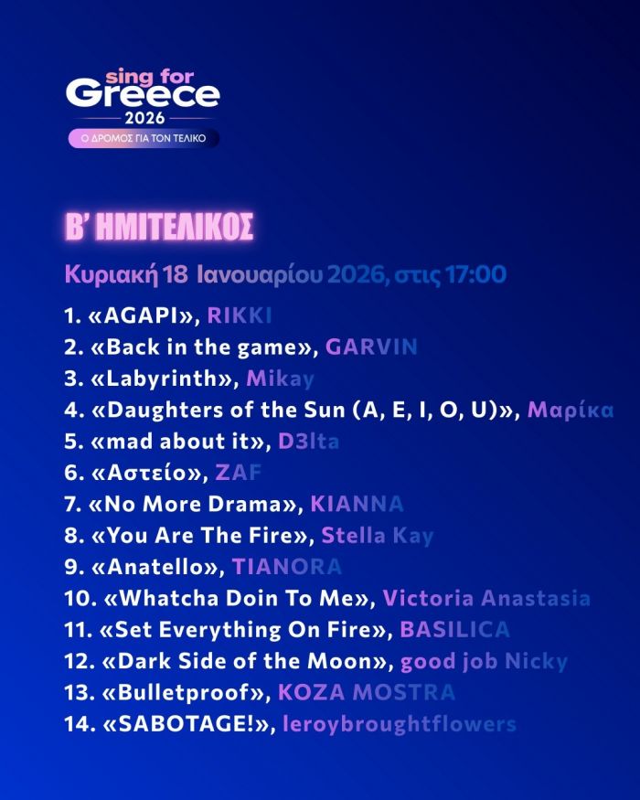 Η αντίστροφη μέτρηση για την ανάδειξη του εκπροσώπου μας στη Eurovision 2026 έχει ξεκινήσει και με βάση την περσινή εξαιρετική πορεία της Κλαυδίας πέρσι - που ήταν η νικήτρια του πρώτου εθνικού τελικού που έγινε στη χώρα μας - οι προσδοκίες για τη φετινή συμμετοχή της Ελλάδας είναι ήδη αυξημένες από το κοινό. Μετά την επίσημη ανακοίνωση μάλιστα, των 28 καλλιτεχνών του «Sing for Greece», το ενδιαφέρον του κοινού έχει πάρει φωτιά, καθώς τα πρώτα snippets των 15 δευτερολέπτων ήταν αρκετά για να δημιουργήσουν το δικό τους ρεύμα στα social media. Πότε όμως, θα ακούσουμε ολοκληρωμένα τα 28 τραγούδια, ποιος προηγείται στα στοιχήματα και ποιος είναι ήδη viral στο TikTok;