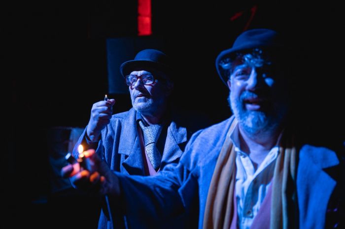 Οι Δημήτρης Φραγκιόγλου και Νίκος Καμτσής, δύο ηθοποιοί με απαράμιλλη χημεία και σκηνική δεινότητα, δίνουν σάρκα και οστά στους Εστραγκόν και Βλαντιμίρ, μετατρέποντας την αιώνια αναμονή τους σε μια συγκλονιστική, σχεδόν επαναστατική πράξη. Οι δυο τους δίνουν σωματική υπόσταση σε ένα είδος υπαρξιακής μνήμης που δεν διαγράφεται. Η ερμηνεία τους μοιάζει με τελετή. Με μαύρη κωμωδία. Με λύτρωση.