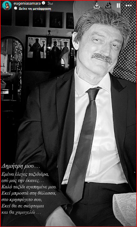 Χωρίς λόγια, μόνο με την ημερομηνία 16/12 και μία φωτιά να καίει ο Δημήτρης Λάλος είπε το δικό του «αντίο» στον σπουδαίο ηθοποιό. Μπορεί να μην διευκρίνισε ότι μιλά για εκείνον, αλλά όλοι οι followers του κατάλαβαν ότι αναφερόταν σε εκείνον με την ανάρτησή του.