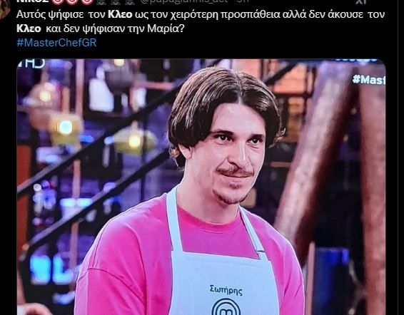 «Ο Φίλιππος ήταν αδιάφορος για μένα, πλέον έχει αρνητικό πρόσημο, με τη Χριστιάνα θεωρούσα πως έχουμε μιλήσει και είχαμε λύσει τα θέματά μας αλλά αυτό είναι το κακό με τις προσδοκίες, καταλήγουν σε απογοήτευση», είπε χαρακτηριστικά ο Κλεό, ο οποίος είχε νωρίτερα δεχτεί και την ψήφο του Σωτήρη, ο οποίος δεν θυμόταν ποιος συμπαίκτης του είχε το χειρότερο πιάτο και εξήγησε πως όταν θα βγει από το παιχνίδι και όταν θα δει το συγκεκριμένο επεισόδιο, αν έχει κάνει κάποιο λάθος, θα φροντίσει να ζητήσει συγνώμη στον συμπαίκτη του για την ψήφο αυτή.