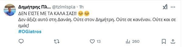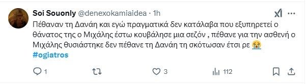 Στο Χ κάποιοι φανς της σειράς είχαν τις αντιρρήσεις τους με αυτή τη νέα απώλεια. «Στο τέλος μόνο ο Μαρκουλάκης θα μείνει ζωντανός σε αυτή την κλινική», όπως έγραψαν χιουμοριστικά.