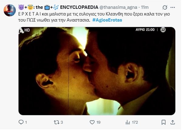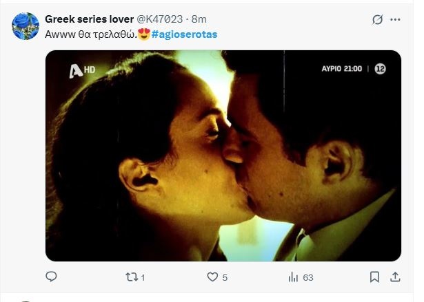 Update: Το τηλεοπτικό φιλί του νέου ζευγαριού, δημιούργησε και ένα νέο hashtag, το #ΧΑΡΑΝΑΣΤΑΣΗ (από τα αρχικά των ονομάτων τους) στο Χ. Οι φανς είναι ενθουσιασμένοι.