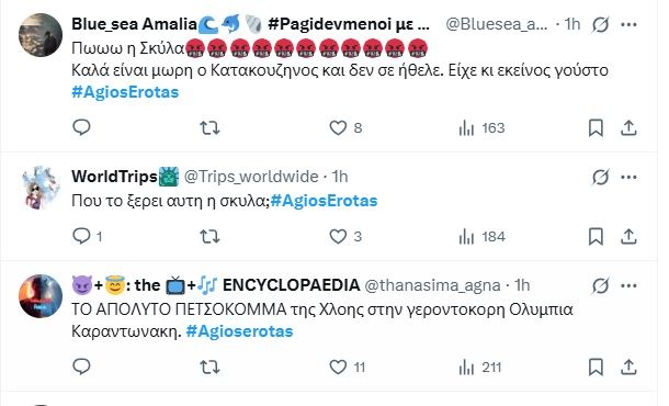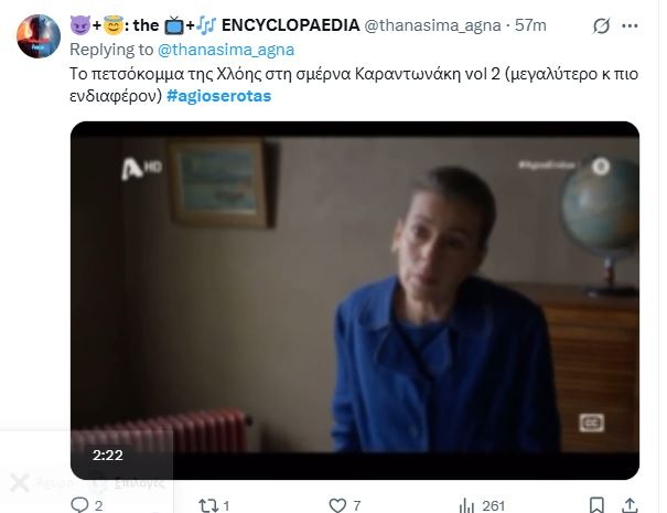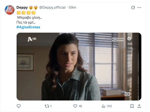Μία πολύ ωραία σκηνή ανάμεσα στη Δανάη Παππά και την Καλλιρόη Μυριαγκού είχαμε χθες στον Άγιο Έρωτα και φυσικά οι φανς της σειράς στο Χ πήραν το μέρος της τηλεοπτικής Χλόης στο δίκαιο ξέσπασμά της. Μία μητέρα που μόλις έχασε το παιδί της (τουλάχιστον αυτό νομίζει) και γίνεται αντικείμενο χλεύης και ειρωνείας από την καθηγήτριά της.