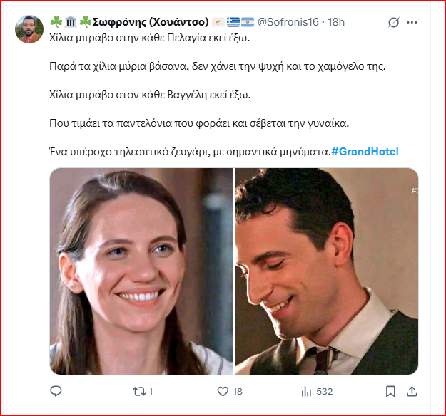 Η Κυβέλη θρηνεί τον γιο της στο Grand Hotel, που παραμένει ο πιο popular ρόλος της σειράς