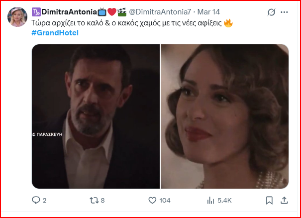 Αναμένουμε και επίσημα πλέον σε λίγες εβδομάδες να επικυρώσει ο ΑΝΤ1 τη συνέχεια του Grand Hotel και για δεύτερη σεζόν. Αυτό σημαίνει πως κάποιες από τις ιστορίες θα κλείσουν και θα ανοίξουν κάποιες άλλες που θα μας οδηγήσουν στον 2ο κύκλο. Σίγουρα θα έχουμε ανανέωση στο καστ, αλλά όχι στους βασικούς ρόλους. Κανείς προς το παρόν δεν πεθαίνει (όπως γίνεται στην ισπανική version της σειράς) σε αυτόν τον κύκλο.