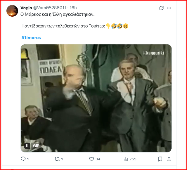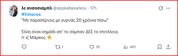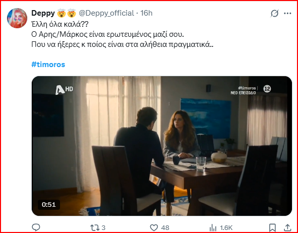 Ο Μάρκος βάζει από σήμερα όλες τις βάσεις για παραμείνει για πάντα μαζί με την Έλλη του στον Τιμωρό. Προφανώς το κοινό έχει καταλάβει πως οδεύουμε στις μεγάλες αποκαλύψεις και τις τελευταίες μέρες όπως και χθες έδωσε ψήφο εμπιστοσύνης στη σειρά και υψηλή τηλεθέαση.