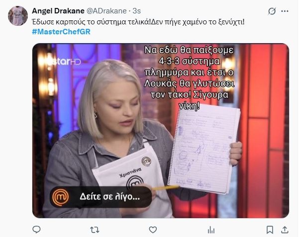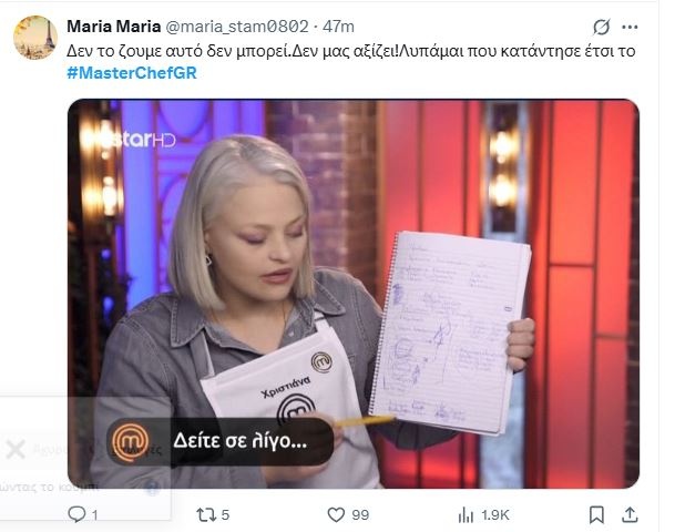 Ημερολόγιο κακίας, όπως πολύ εύστοχα είπε χιουμοριστικά κάποιος τηλεθεατής στο Χ, έχει δημιουργήσει η Χριστιάνα και αρχηγός των γκρι στο MasterChef, δείχνοντάς μας το τετράδιο στο οποίο είχε σχεδιάσει τη στρατηγική της. Στο δικό της μυαλό νόμιζε πως βρήκε το τέλειο σύστημα για την καθολική ψηφοφορία.