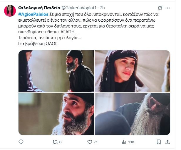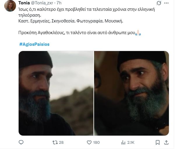 Η σειρά Άγιος Παΐσιος από τα Φάρασα στον Ουρανό, κατάφερε να ξεφύγει από παγίδες και μας παρουσίασε έναν δεύτερο κύκλο που ήταν άρτιος καλλιτεχνικά αλλά και σε επίπεδο κινηματογράφησης. Την αντιμετωπίζουμε ως μία τηλεταινία, γιατί είχε αυτά τα χαρακτηριστικά.