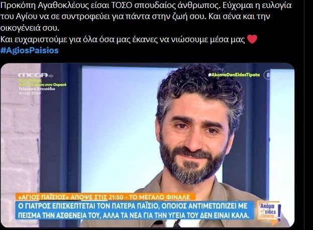 Ανήμερα του μεγάλου φινάλε της σειράς Άγιος Παΐσιος στην οποία πρωταγωνιστεί, ο Προκόπης Αγαθοκλέους συγκλόνισε το κοινό του και εκτός ρόλου.