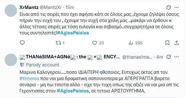 Λίγες ώρες πριν την προβολή του τελευταίου επεισοδίου της σειράς, ο σκηνοθέτης Στάμος Τσάμης με ανάρτησή του ευχαρίστησε για την αγάπη του κόσμου αλλά και τα συγχαρητήρια που έχει δεχθεί η σειρά από το σύνολο του καλλιτεχνικού κόσμου.