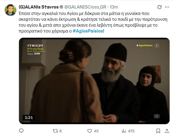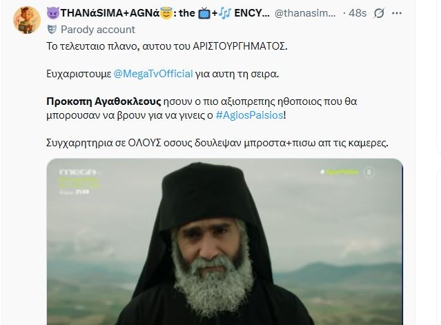Η σειρά - φαινόμενο της χρονιάς, Άγιος Παΐσιος από τα Φάρασα στον Ουρανό στο Mega ολοκληρώθηκε με συγκίνηση. Η ανάρτηση του σκηνοθέτη Στάμου Τσάμη που ευχαριστεί τα εκατομμύρια των τηλεθεατών που έδειξαν τη μεγάλη τους αγάπη στη σειρά.
