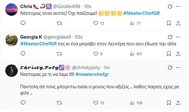 Ήρωας ξανά ο Νέστορας στο MasterChef γιατί έσωσε 2 φορές την ομάδα του και οι γκρι πήραν ξανά τη νίκη.