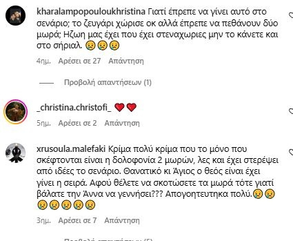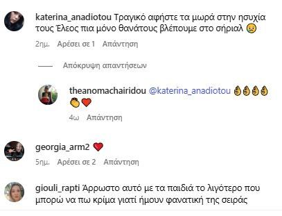 Το κοινό έχει ήδη αντιδράσει στα social media και δεν θέλει να δει αυτή την εξέλιξη. Όχι μόνο λόγω της τραγικότητας της σκηνής, με το να δει στην οθόνη του τον θάνατο δύο παιδιών, αλλά γιατί μέχρι σήμερα, αυτό το τηλεοπτικό ζευγάρι ήταν το κωμικό της σειράς.