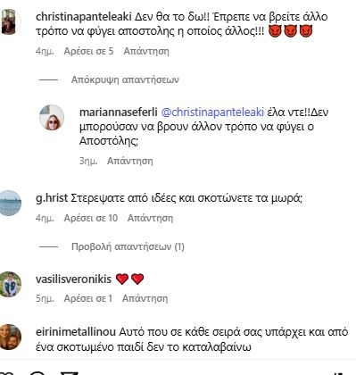 Υπάρχουν πληροφορίες πως τελικά ο Αποστόλης είναι εκείνος που θα βάλει τέλος στη ζωή του από τύψεις, αλλά αυτό αποτελεί ακόμη ένα ανεπιβεβαίωτο spoiler.