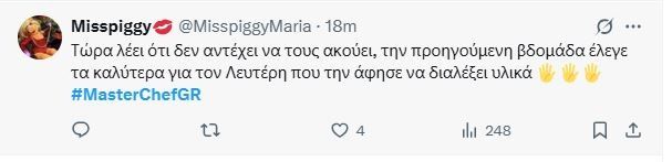 Ωστόσο με το δεδομένο πως έχουν φύγει πραγματικά καλοί μάγειρες τις τελευταίες εβδομάδες από το MasterChef, αυτή η αποχώρηση έπρεπε να γίνει. Και συνέβη μετά από 2 ώρες μίας πολύ απαιτητικής δοκιμασίας.