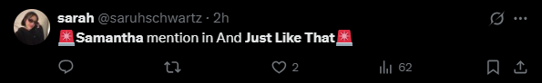 Η μουσική του επεισοδίου θυμίζει έντονα τη χαρακτηριστική μελωδία του «Sex and the City», προκαλώντας ακόμη μεγαλύτερη νοσταλγία για τις καλές παλιές μέρες, καθώς η Samantha απαντάει.