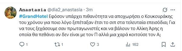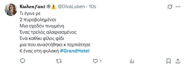 Δεν είχαμε μόνο τραγικές εξελίξεις στο Grand Hotel αλλά και μία ευχάριστη με τη Θεώνη να επιστρέφει από το Παρίσι λίγο πριν το τέλος και να έχει θεραπευτεί πλήρως και να περπατά ξανά.