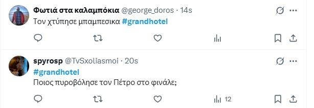 Η τελική έκπληξη ήταν ο πυροβολισμός του Πέτρου λίγο πριν φύγει οριστικά μαζί με την Αλίκη. Άδικο εντελώς αυτό το φινάλε για τον ρόλο και ευχόμαστε να μην ισχύουν τα spoilers που μιλούν για θάνατό του και αποχώρησή του από τη σειρά.