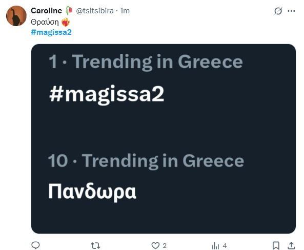Το τέλος του έπους της Μάγισσας όπως ονόμασε και ο ΑΝΤ1 τα 5 τελευταία διπλά επεισόδια, επανέφερε ξανά τη σειρά στα trends στο Χ. Έστω και αν οι περισσότεροι τηλεθεατές έχουν χάσει αρκετή από την πλοκή, επειδή η σειρά εδώ και αρκετούς μήνες είχε μετακομίσει τα μεσάνυχτα της Κυριακής.