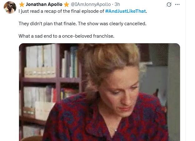 Το 12ο και τελευταίο επεισόδιο της 3ης σεζόν του And Just Like That, ήταν και ο οριστικός επίλογος του sequel του Sex and the City ολοκληρώνοντας έτσι την πορεία της εμβληματικής σειράς και με τις δύο της μορφές.