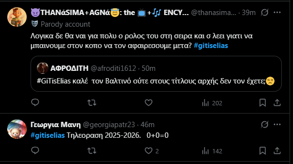 Ζούνη - Χαραλάμπους ήταν τα πρόσωπα που πρωταγωνίστησαν στα social media στην πρεμιέρα της σειράς, όπως και η παραλίγο νύφη, Ιφιγένεια Τζόλα. Κάποιοι ωστόσο αντέδρασν ξανά στη βία που προβάλλεται από τη σειρά.