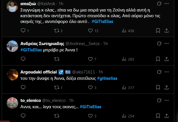 Είδαμε ωστόσο ξεκάθαρα μία μεγάλη αλλαγή, καθώς όλο το σενάριο πλέον προσανατολίζεται στην οικογένεια Ρουσσάκη από την Κρήτη. Οι Βρεττάκοι έχουν αποδεκατιστεί και η Πέμη Ζούνη πλέον ως Αλεξάνδρα Ρουσσάκη, κερδίζει τις εντυπώσεις. Εκείνη και η Στεφανή Χαραλάμπους ως Άννα ήταν και τα πρόσωπα που στο Χ έγιναν trend.