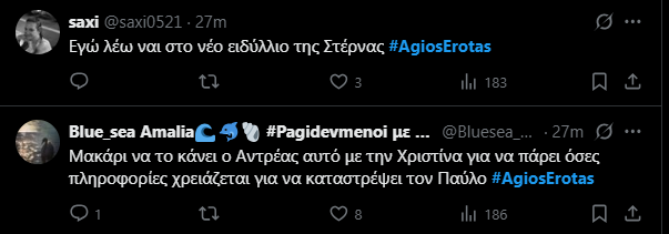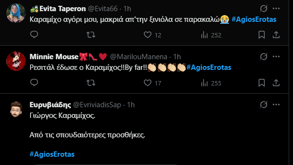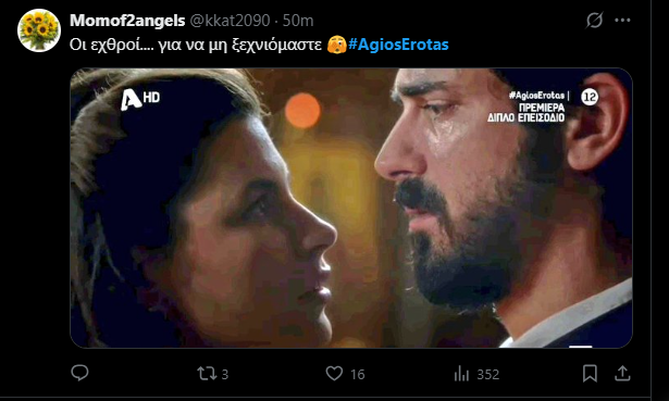 Προς το παρόν το κοινό στο Χ αποθέωσε Καραμίχο και Παππά και έκανε μία παράκληση στον Δημήτρη Γκοτσόπουλο για το μόνιμα θλιμμένο βλέμμα του. Είναι όμως μέρος του ρόλου του.
