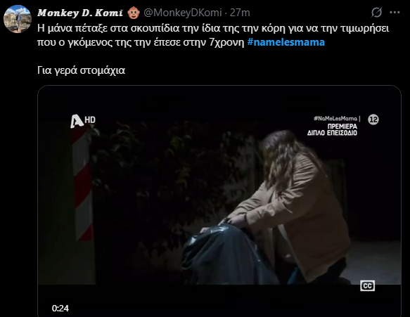 Όπως και αυτή που ακολούθησε με τη μητέρα της Ιωάννας (Δήμητρα Βλαγκοπούλου) να κλείνει την κόρη της σε μία σακούλα σκουπιδιών.