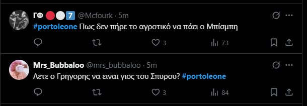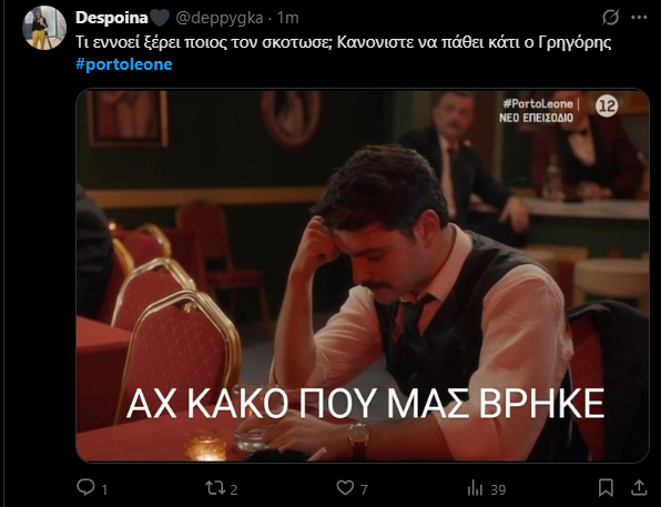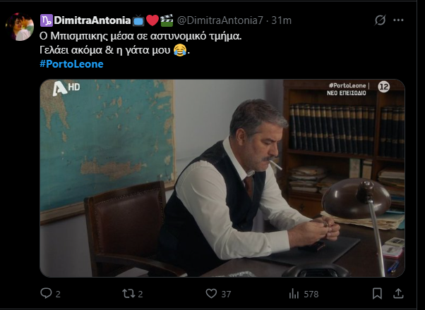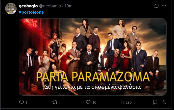 «Στη γειτονιά με τα σπασμένα φανάρια του Μπισμπίκη». Στα social media μονοπώλησε το ενδιαφέρον ο ρόλος του Βασίλη Μπισμπίκη στο Porto Leone ως αστυνόμος Γιάμαρης σε σχέση με το πρόσφατο τροχαίο.
