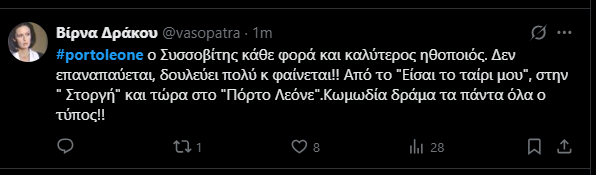 Στα social media και ειδικά στο Χ προβλέπουν ήδη τις καταστροφικές επιπτώσεις που θα έχει η αναμέτρηση Γαλήνης - Αλεξάνδρας και το κοινό λάτρεψε την Κλέλια Ρένεση σε έναν τόσο διαφορετικό ρόλο που της ταιριάζει.