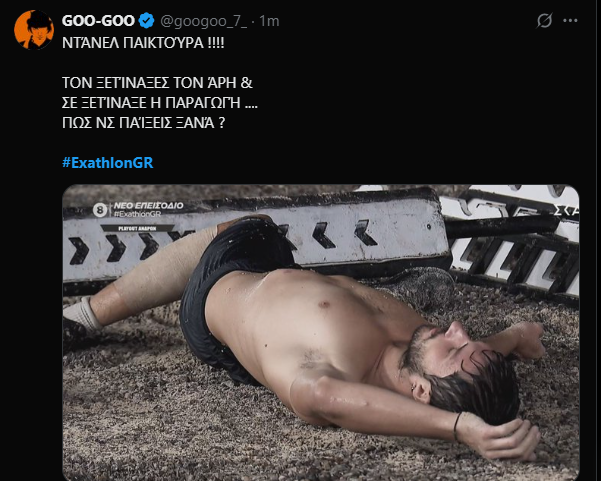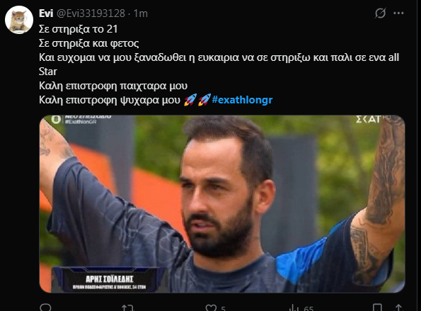 Αλλά και στα social media είχαμε αρκετές εκφράσεις θαυμασμού για τον παίκτη που πάλεψε σκληρά και όπως είπε στις δηλώσεις του, ξεπέρασαν κάθε προσδοκία του οι ωραίες συνθήκες που έζησε στο Exathlon.