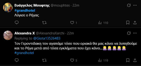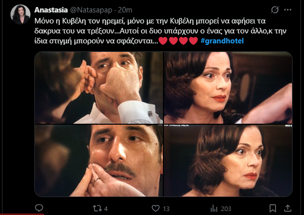 Εκείνος να θρηνεί και εκείνη πραγματικά να ανησυχεί για εκείνον. Η σκληρή Κυβέλη έδειξε ξανά full ερωτευμένη. Το Χ λάτρεψε ξανά τη χημεία τους.